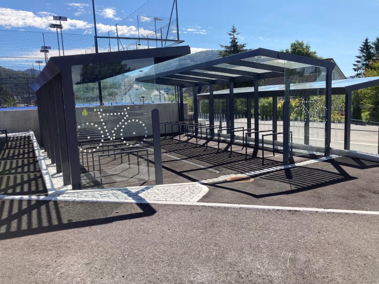 Aureo Velo er en serie sykkeloverdekninger med design basert på Aureo leskur. Overdekningen for sykler er gjort dypere for å få plass til sykkelparkering. Leveres i to lengder og høyder. Modellen med høyere tak passer for to-etasjes sykkelparkeringsløsninger som Easylift. På bildet er det brukt Egde sykkelstativ