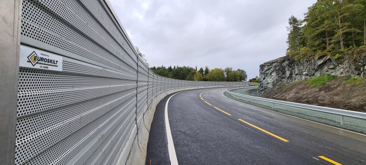 Støyskjermene har på innsiden perforerte energi absorberende vegger, og på utsiden reflekterende.