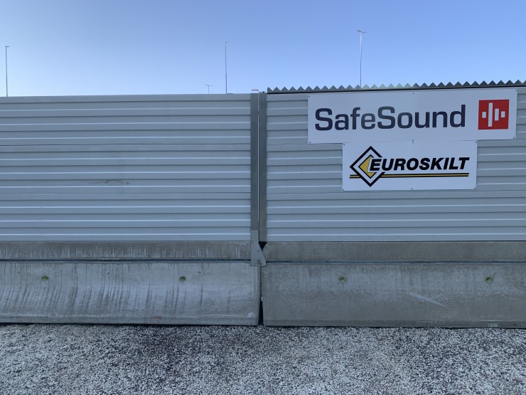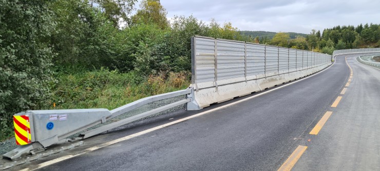 Støyskjermen er montert på ett mobilt betongrekkverk, som skaper et trygt miljø på begge sider av skjermen.