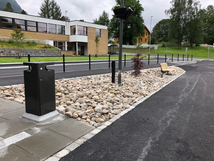 Vi har levert Adapter rekkverk, publicus- sykkeloverdekning og avfallsbeholder og Jubile benk.