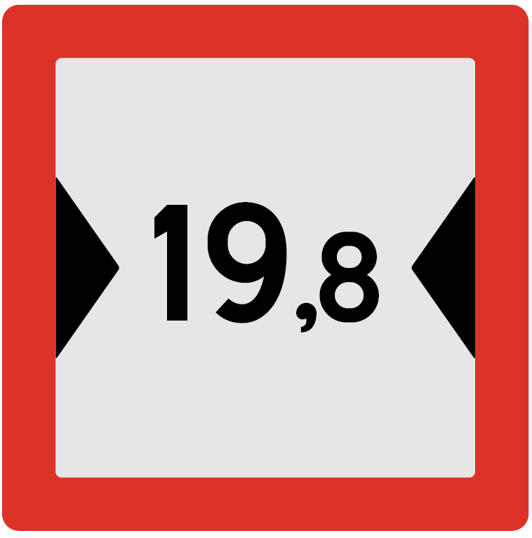 Anvendelse: Angir horisontal klaring i en farledsinnsnevring, utdypet renne eller lignende.