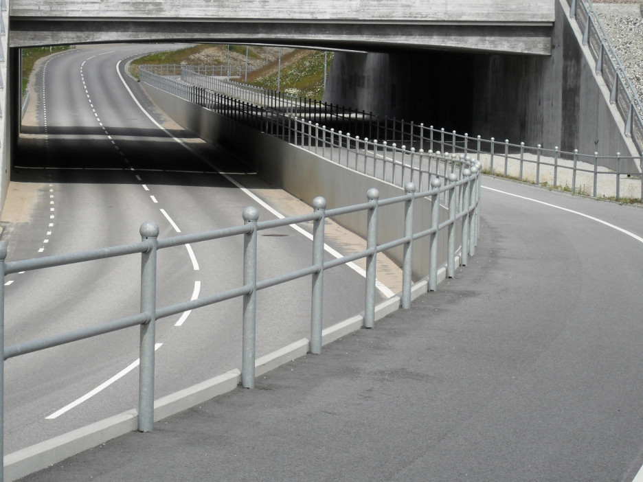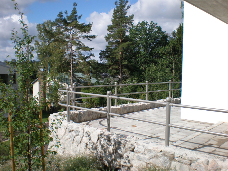 Adapter er et stabilt rekkverk som skaper trygghetsfølelse og samtidig smelter inn som en naturlig del av miljøet. Konstruksjonen med runde rekkverksrør gjør monteringsarbeidet hurtig og smidig. Kan også monteres i vinkel og med en viss stigning.