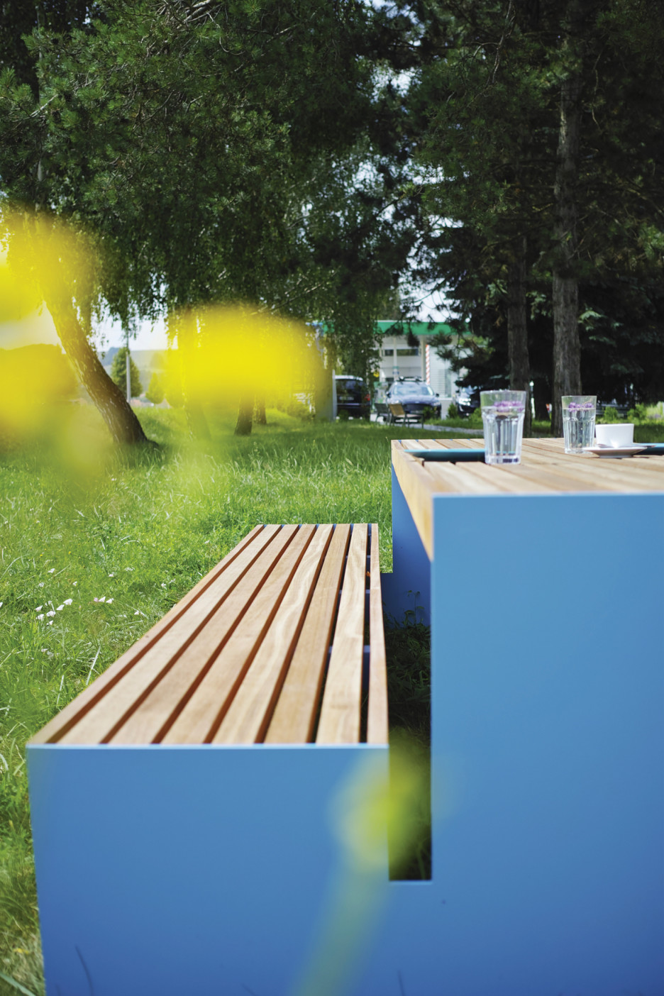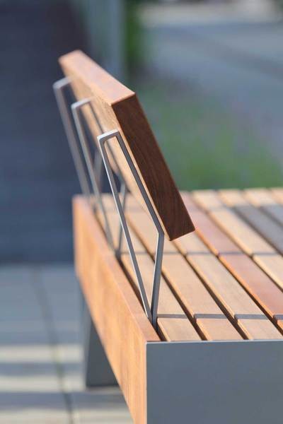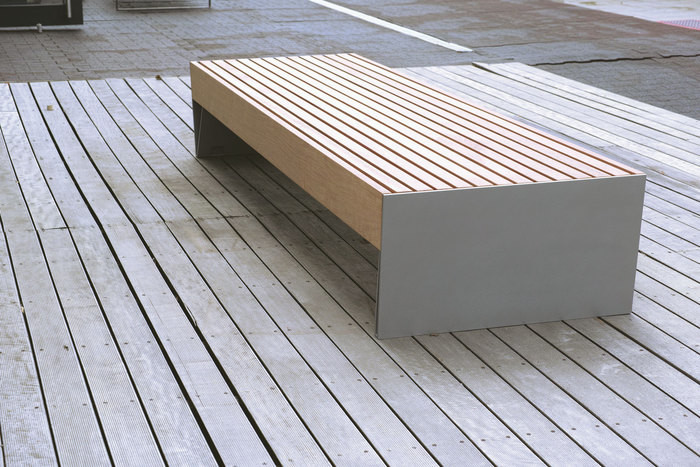 Treverket enten i varmebehandlet ask eller FSC godkjent jatoba. Begge typene eldes pent, og etter en stund oppnås sølvaktig patina. Dette sammen med friske farger skaper spenstige og inviterende møteplasser.