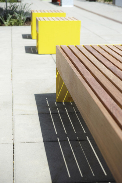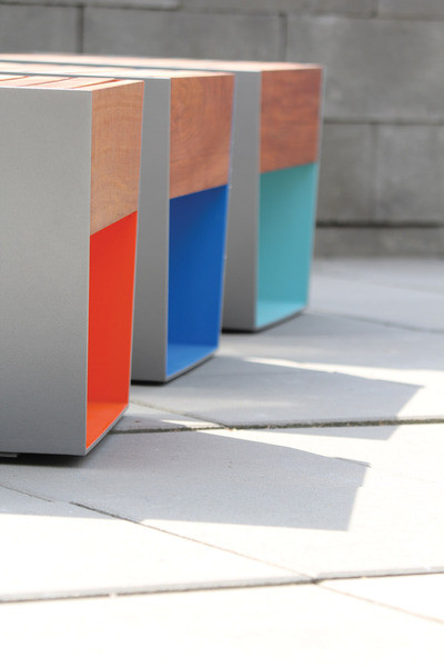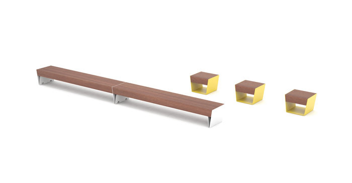 Kontrasten disse elementene skaper samt store, massive dimensjoner er effektfullt i det offentlige rom; møblene blir lagt merke til. Modulbasert oppbygging gjør det mulig å få til store, lange formasjoner.
