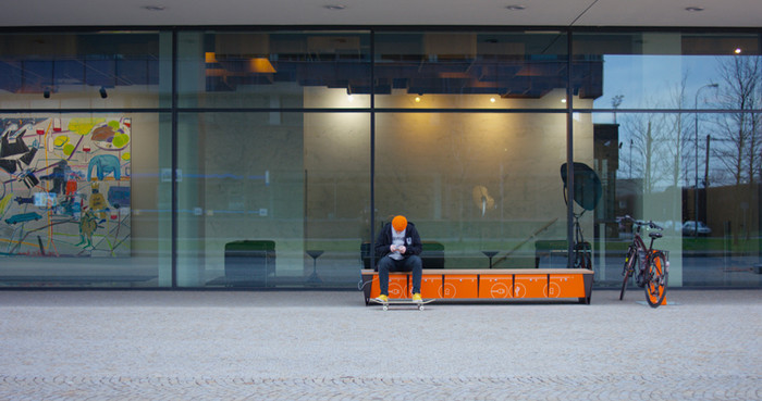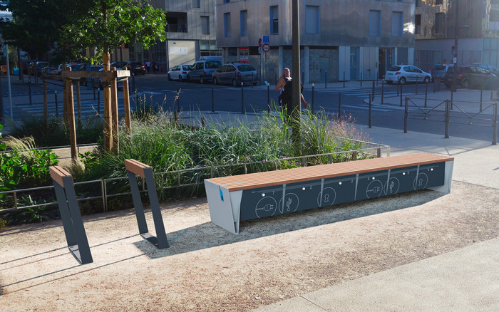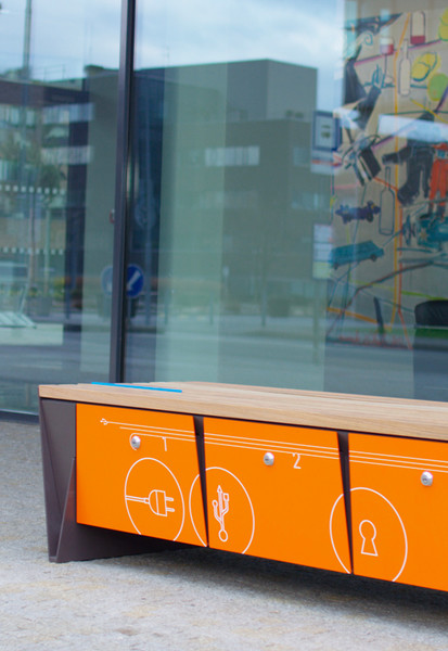 eBlocq er en benk i Smartcitè-serien hvor produkter utvikles med tanke på den økende bruken av teknologi.