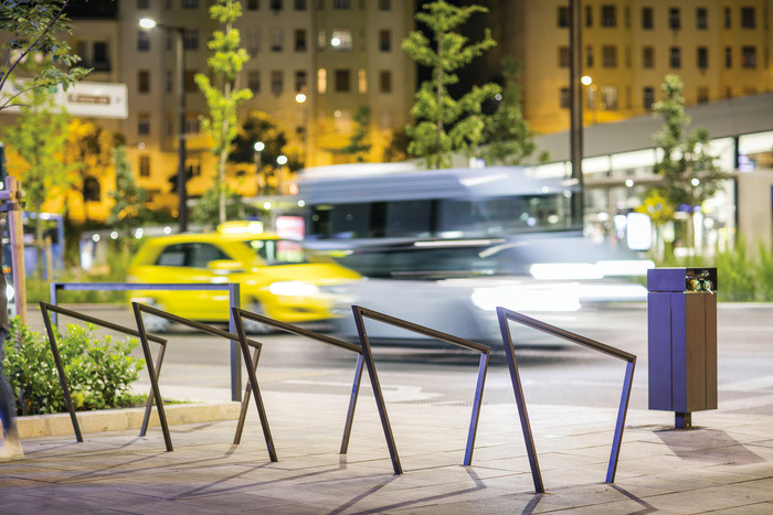 Beskyttende gummilist av kraftig gummi (EPDM) i den øvre del av sykkelstativ.