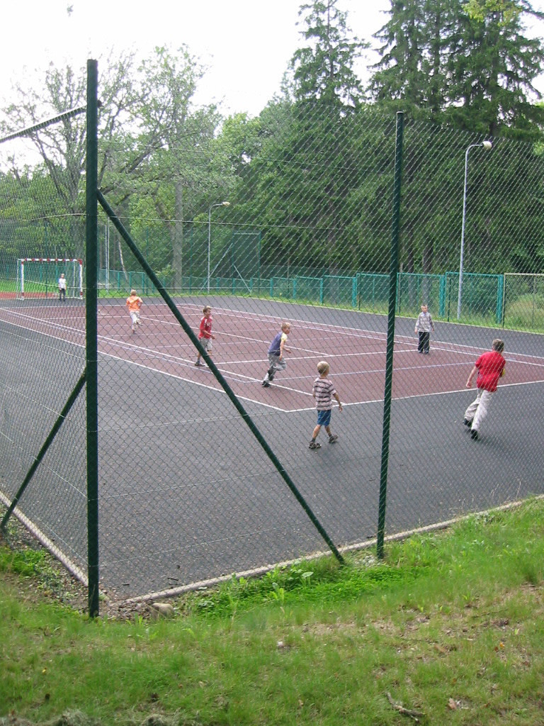 Stolpeavstand på gjerde med overligger på toppen er ca. 2,5 meter.