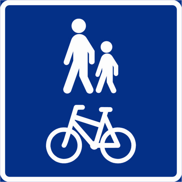 Skiltet angir veg som er anlagt for gående, syklende og fører av liten elektrisk motorvogn. Skiltet angir dessuten at trafikkreglenes bestemmelser om bruk av slik veg gjelder.