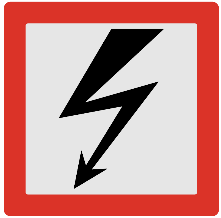 Anvendelse: Angir strømførende ledning med livsfarlig spenning.