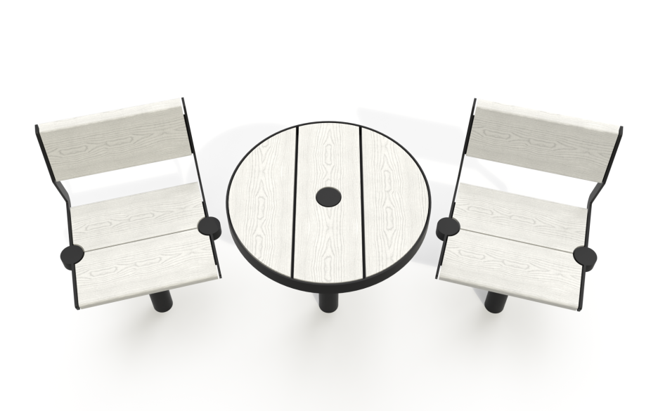 NORD er et vakkert utvalg av møbler som består av benker, bord og stoler.
