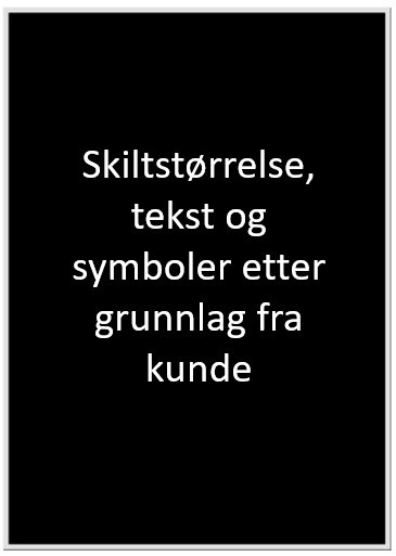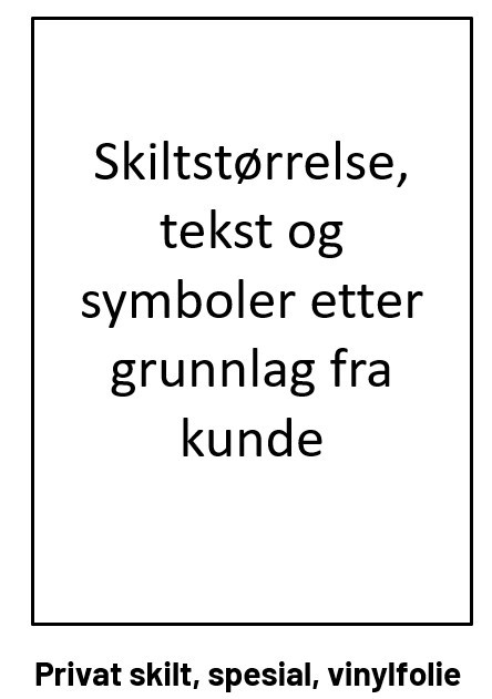 Vi produserer spesialskilt etter dine behov, med tekst og symboler etter dine ønsker. Priser er pr kvm.