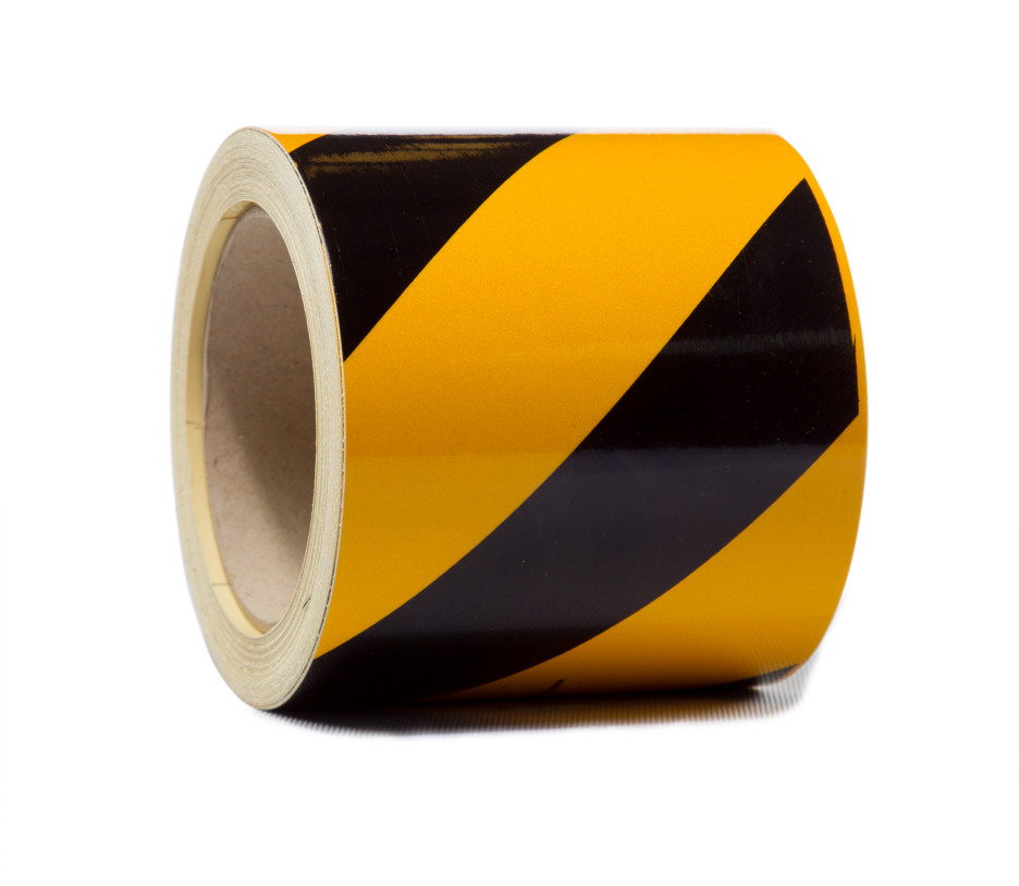 Reflekstape, gul/sort, 100 mm x 10 m venstre