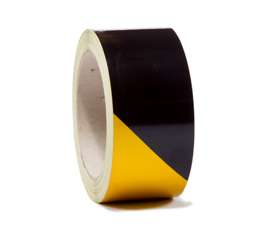 Reflekstape, gul/sort, 50 mm x 10 m venstre