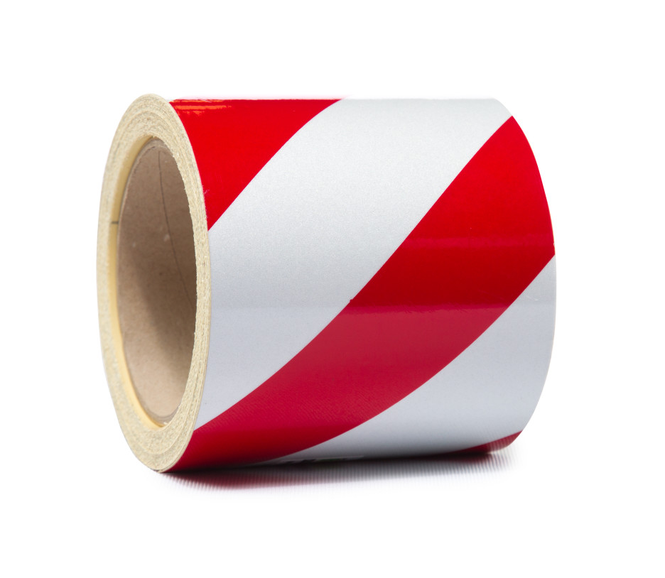 Reflekstape, rød/hvit, 100 mm x 10 m venstre