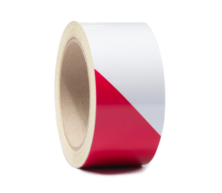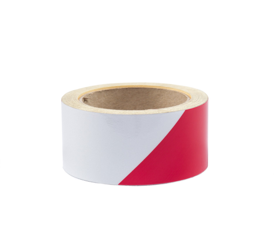 Reflekstape, rød/hvit, 50 mm x 10 m venstre