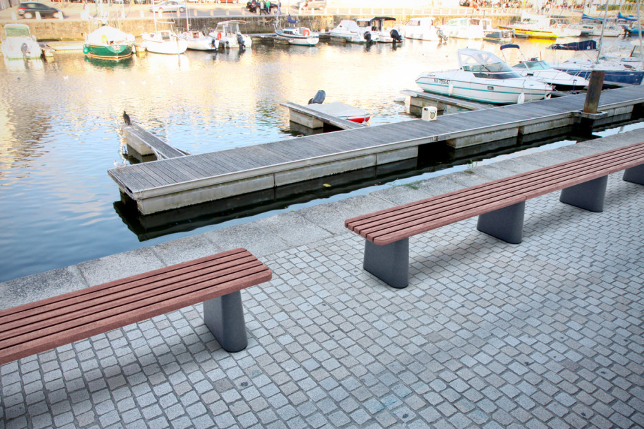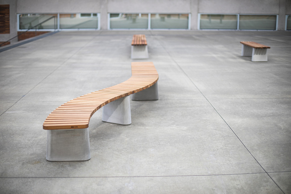 Robuste benker med betongfundament og med modernisert form på bena, gjør at denne serien passer perfekt i alle miljøer.