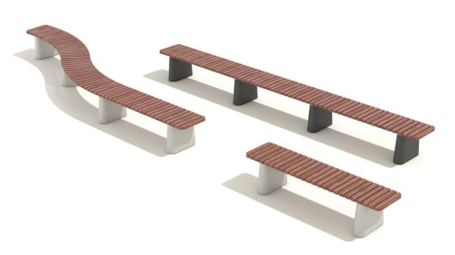 To typer benker med ryggstøtte, samt benker uten rygg i rette eller buede former. Seter uten rygg kan også monteres på eksisterende murkanter av granitt eller betong.