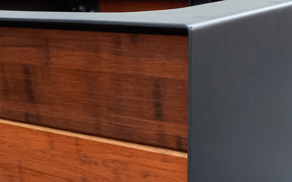 Materialene i denne serien er corten-stål eller pulverlakkert stål og bambus. Innerkassen er laget av polypropylen som er resirkulerbar plastmateriale.