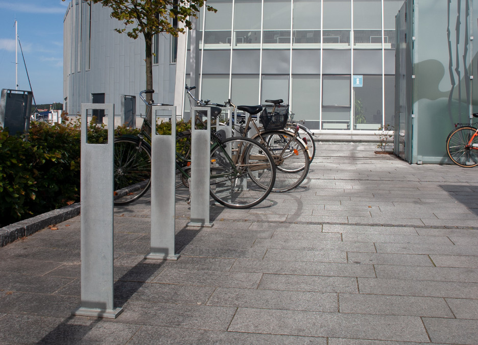 Utskjæringen i toppen gir syklisten en enkel måte å låse sykkelen på. Samtidig som den tilfører en designdetalj til sykkelstativet.