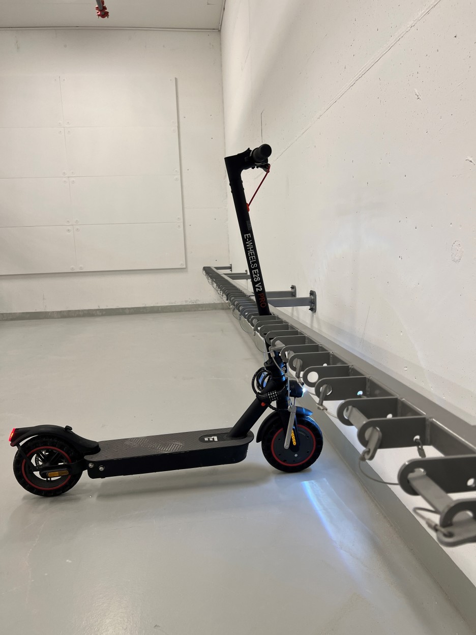 Saferoad sparkesykkelstativ er en enkel og meget funksjonell løsning for en ryddig og trygg parkering av sparkesykler, både vanlige og elektriske.