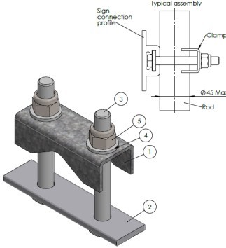 Klammerserie for å feste forskjellige skilt typer til for eksempel fagverks portaler, kamstål eller gjengestenger.