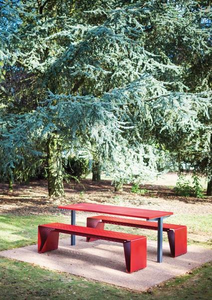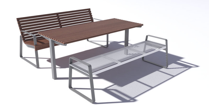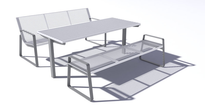 Bordben i varmgalvanisert og pulverlakkert stål.