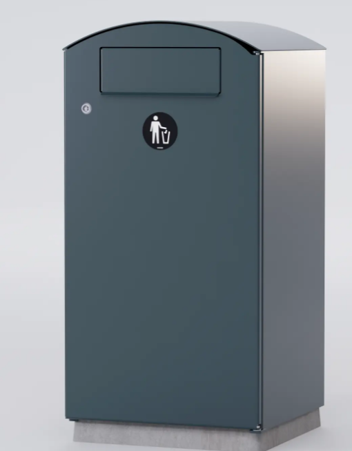 Robuste og brukervennlige beholdere med høy stabilitet og enkel tømming. Den sidehengslede døren gir ergonomisk tømming uten tunge løft. Buede tak hindrer at gjenstander plasseres oppå og sørger for at avfallet havner i beholderen, samtidig som utformingen holder fugler ute. Leveres som standard med poseholder.