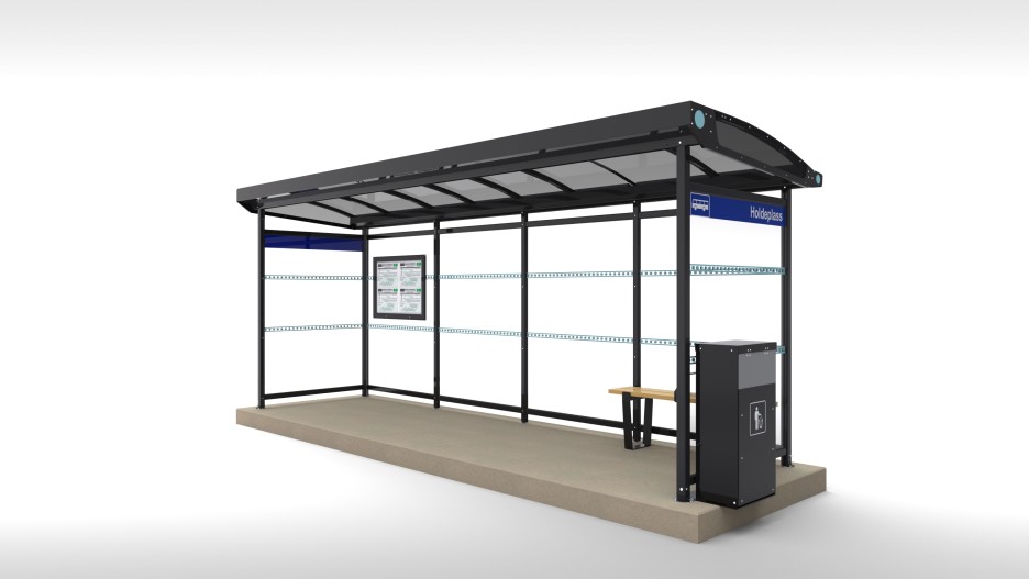 Bruksområder inkluderer holdeplasser for buss, trikk, taxi og jernbane. Kan også anvendes som røykeskur.
