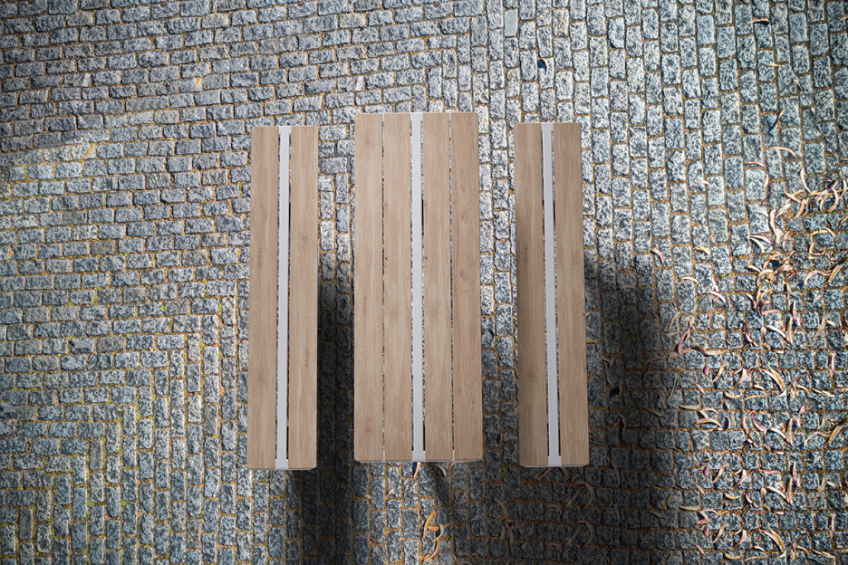 Møbelserien inkluderer stoler, benker, sofaer og bord. Konstruksjonen er solid med en ramme av stål og solide planker av svensk furu, og sittemøblene er tilgjengelige både med og uten gripevennlige armlener.
