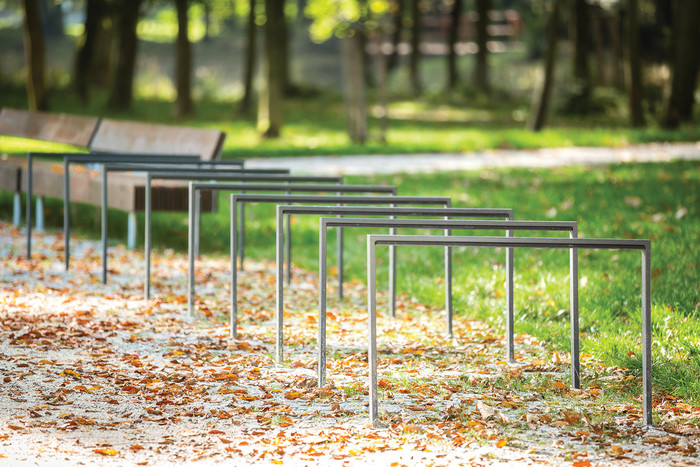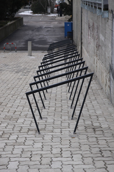 Langs den øvre horisontale delen er det en gummilist som beskytter sykkelrammen mot riper og reduserer risikoen for at sykkelen glir når den lenes mot stativet.