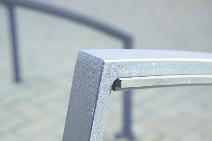 Beskyttende gummilist av kraftig gummi (EPDM) i den øvre del av sykkelstativ.