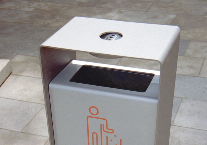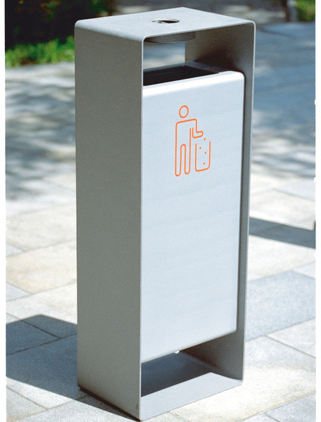 Radium avfallsbeholder har en geometrisk formet kropp med mykt avrundede kanter drar nytte av den bøyde platens egenskaper. Her forenes elegans med god holdbarhet. Radium rommer 50 liter og passer spesielt bra til Radium parkmøbel. Beholderen har integrert askebeger i rustfritt stål på toppen.