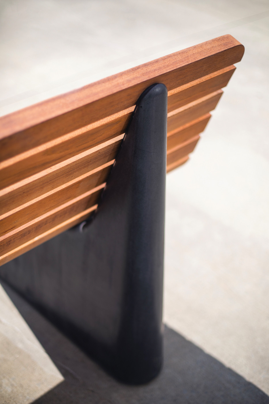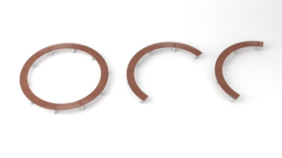 Trespilene leveres enten i varmebehandlet ask (Thermoask), akasia (europeisk, aka robinia) eller FSC godkjent Jatoba. Spilene er montert enten tvers- eller langsgående på benkene. Ben av HSC betong (High strength concrete). Betongdelene enten i lys eller mørk grå farge.