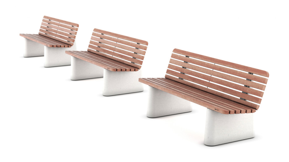 Robuste benker med betongfundament og med modernisert form på bena, gjør at denne serien passer perfekt i alle miljøer.