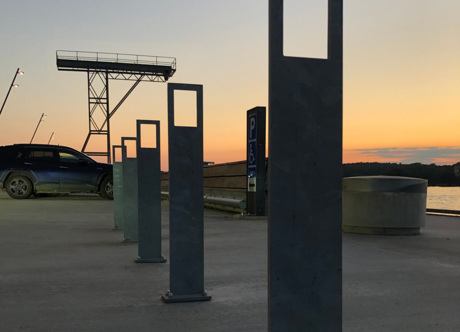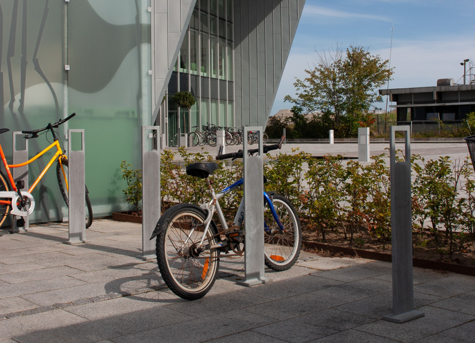 Utskjæringen i toppen gir syklisten en enkel måte å låse sykkelen på. Samtidig som den tilfører en designdetalj til sykkelstativet.