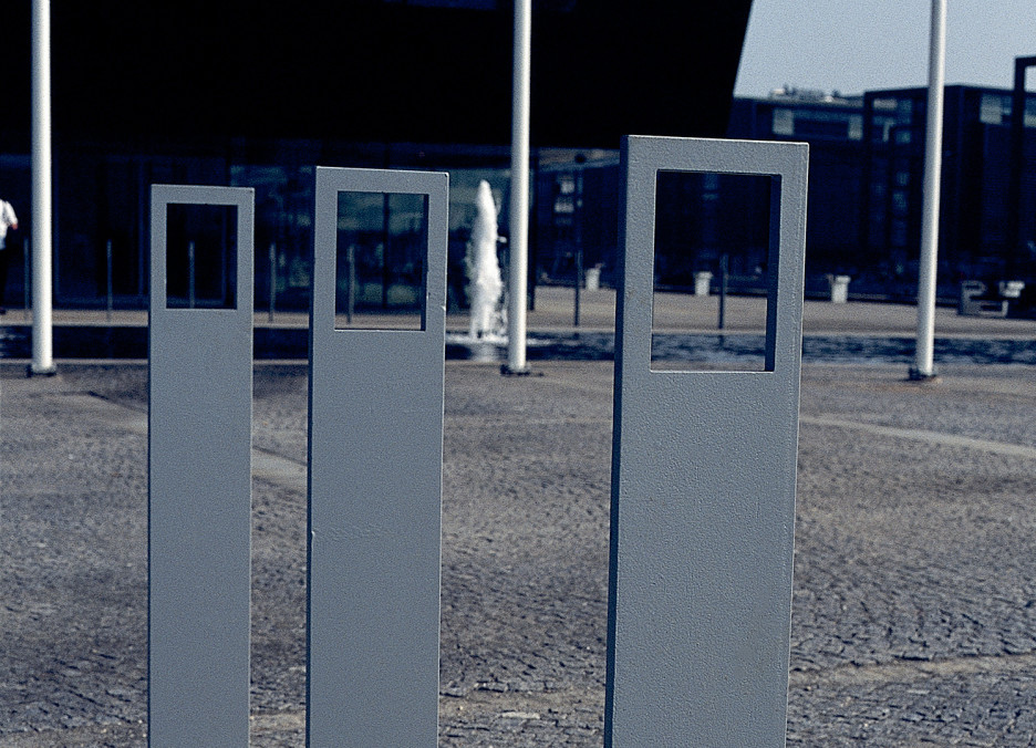 Royal C sykkelstativ er en enkel stålplate med utskjæring i toppen. Sykkelstativet er designet av SHL Architects som en del av serien for Søren Kierkegaards Plads i København.