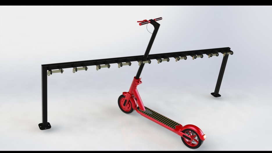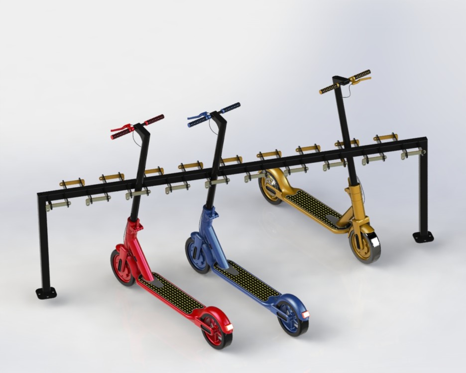 Saferoad sparkesykkelstativ er en enkel og meget funksjonell løsning for en ryddig og trygg parkering av sparkesykler, både vanlige og elektriske.