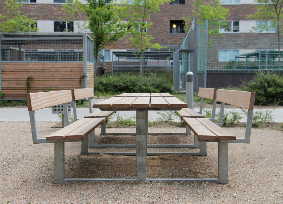Siesta er en serie med picnic-løsninger for hyggelig stunder og pauser i parker, gårdsplasser, skolegård og andre uterom hvor det er behov for samlingsplasser.