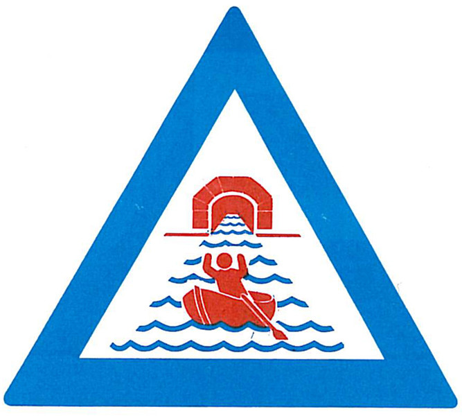 Skilt nr. 1.04 NVE LS R-kl 1 gul/blå Tunnelåpning vannstrøm